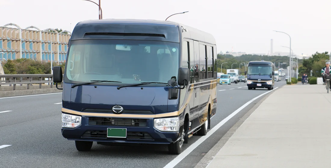 役員・管理職の送迎に最適なハイグレード小型バスから、部署単位の移動に便利な大型観光バスまで幅広くご用意。移動中も有意義な会議や打ち合わせ、視察準備の時間として活用いただけます。